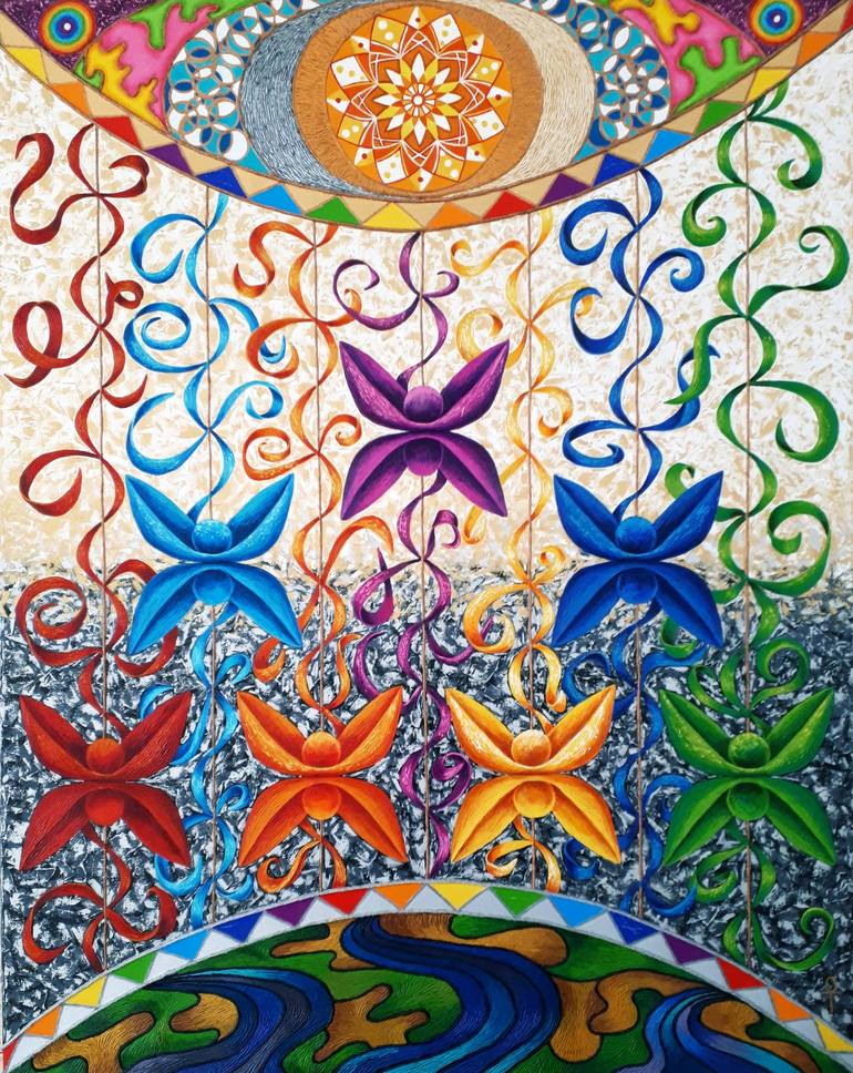 The painting "Energy of the Chakras" was painted in 2010. There are 7 chakras in the center of the composition, each of which has its own specific color and energy. This author's painting was created in only one copy. Very beautiful voluminous strokes that are interesting to consider. This pictur...
