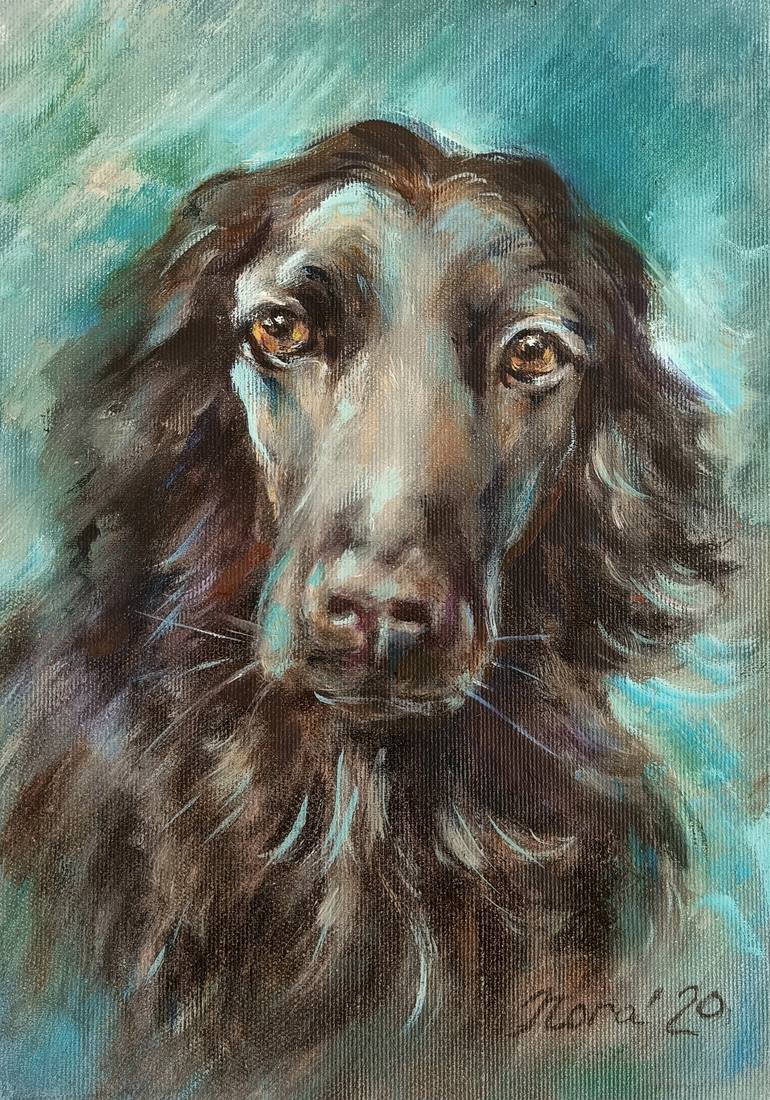 The original portrait of the English cocker spaniel black dog was painted in oil on UNSTRETCHED canvas. The painting needs to be framed to hang on the wall. It's a one-of-a-kind, hand-signed fine art piece. The size of the image is 11.8 x 7.9 inches/ 30 x 20 cm. The size of the canvas is 14.2 x 9.8...