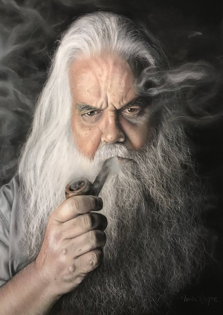 Subject: Man smoking a pipe. Creation: The painting was created from the observation of an intellectual man and poet with an abundant beard, immersed in his thoughts while smoking his pipe. Inspiration: I wanted to capture the introspective atmosphere of the moment. The inspiration came from the i...