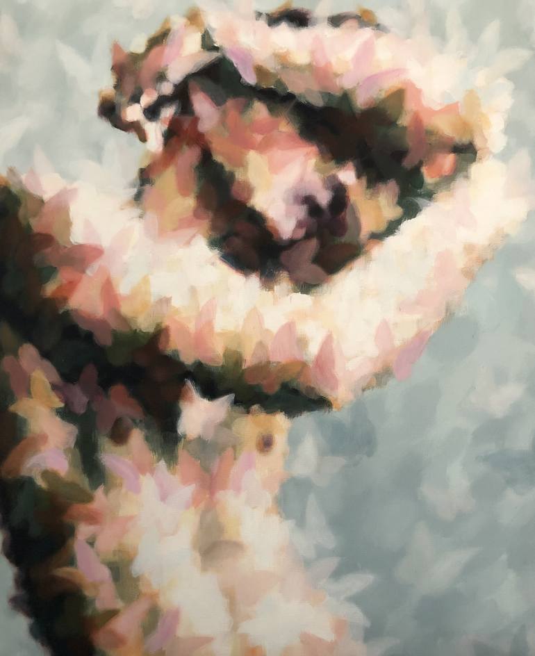 This piece continues in a series of butterfly pieces representing transformation of self and life. This piece focuses on a different perspective of masculinity. The posture is expressive but closed. The color palette is soft. The overall affect makes a more vulnerable and honest man. The subjec...