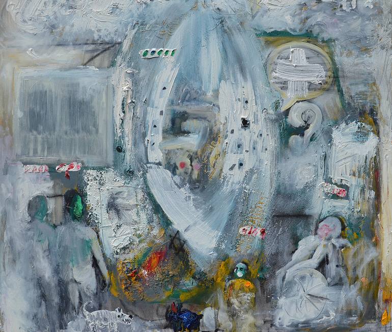 Myths in/about modernity Georg Redžek’s paintings are characterized by allegory, reference to the works of Bosch, Brueghel and Dürer, as well as by self-awareness about the problems of the new-millennial digital age. Seemingly incompatible, these three characteristics meet in Redžek’s works thanks to his combination of classical motifs and representative signs of the modern, contemporary age. In the latest series of works created during 2020 and 2021, the classical motifs are a labyrinth, a white rabbit (as a symbol of resurrection, reincarnation and revitalization), Last Supper and pigs in front of which “pearls had been thrown”. Redžek sets these classical motifs in compositions with representatives of modern and contemporary times, such as displays, bar codes, cables, the Coca-Cola logo, in order to re-examine and display the time in which we live. The labyrinth is an allegorical motif that has fascinated people since the ancient days, becoming a symbol of human perseverance, resourcefulness, skills, but also of complete loss and inability to get out of a given situation. It is therefore associated with feelings of anxiety, alienation, separation from others, fear of complete helplessness, but it also becomes a symbol of contemporaneity for which it is not known in which direction it develops (degrades) and how it can end. To these features of the labyrinth, Redžek adds new values, showing that the labyrinth is more than an adequate symbol to represent the global events that have taken place over the past two years. In one painting, the labyrinth is an allegory of a completely desolate city, seemingly mythical or dystopian, but in fact extremely realistic, because the cities were completely empty during recent lockdowns and restrictive measures. Without a single person, the labyrinth loses its meaning – without a man lost in it, the labyrinth in itself represents nothing, which shows that a city without people on the streets is no longer a city. In the second painting, the motif of labyrinth becomes a set of multiplied walls as a still applied system of separation and segregation. By reducing labyrinth to walls, Redžek introduces a novelty in his work in a sense that he does not create reminisce about Bosch, Bruegel or Dürer, but he quotes works of the contemporary artist Banksy, namely his art of resistance, ie the art of graffiti and murals on public walls.