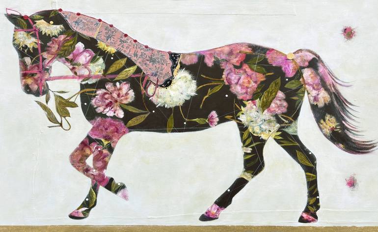 Equestrian Elegance: Tapestries of Time is a collection that harmoniously blends the timeless beauty of horses with the intricate artistry of old tapestries and delicate floral motifs. Each painting in this series captures a moment of serene elegance, where modern horses are adorned with vibrant blo...