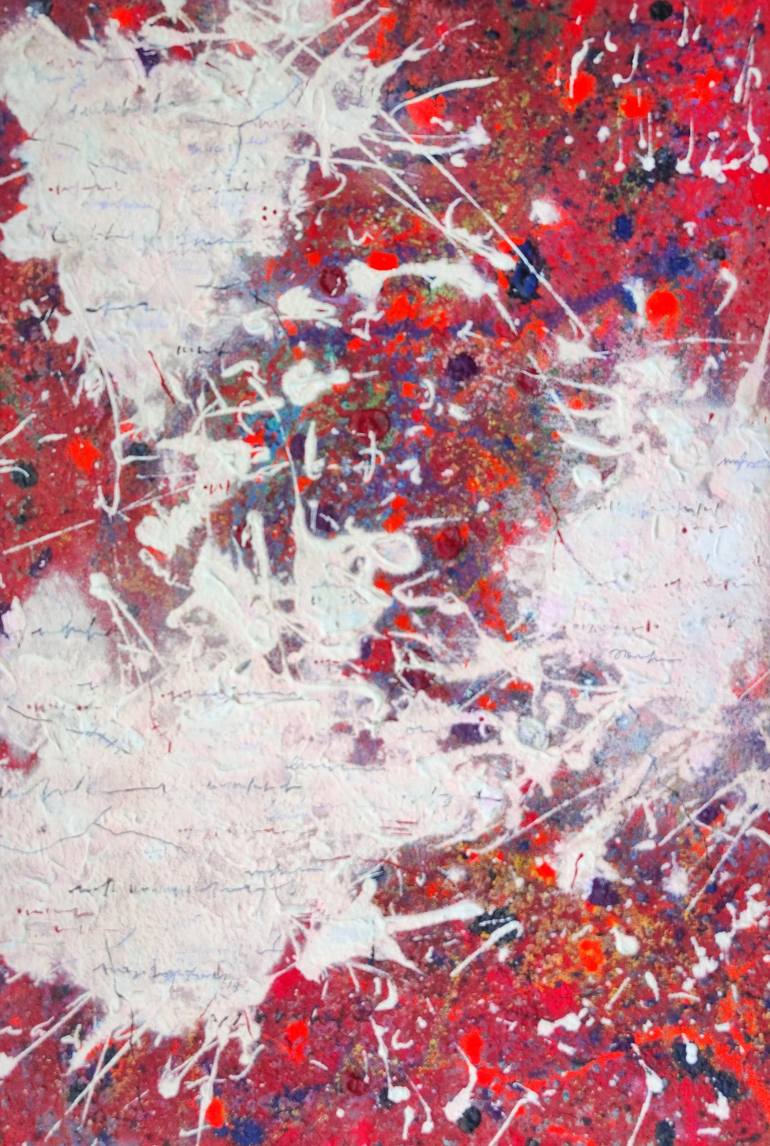 This artwork is inspired by the raw intensity of human emotions, the unpredictability of life, and the fleeting nature of memories. The deep reds, splattered whites, and scattered textures evoke a sense of energy, passion, and chaos, symbolizing both creation and destruction. The layered elements an...