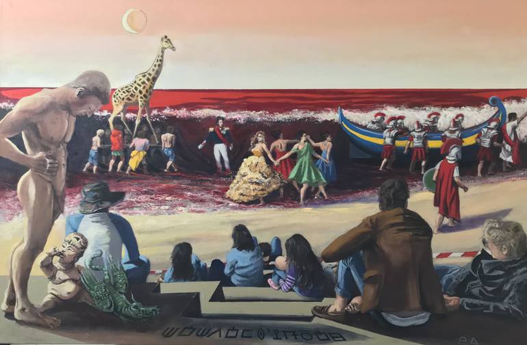 “Et cependant voilà” is it’s complete title (And however here . . .). A parade of sorts is occurring against the rising tide of a beach. There are Roman centurions, dancers in flowing costumes, one dressed as A 19th century destitute French King, and children carrying a float with a tall giraffe. ...