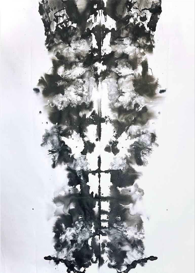 Behold the Ethereal beauty of this 60 x 48-inch masterpiece, where a Rorschach-like inkblot unveils a graceful form imbued with mystical allure and poetic resonance. With its empowering and enigmatic presence, this painting bears a soft elegance that transcends time. It is destined to be passed down...