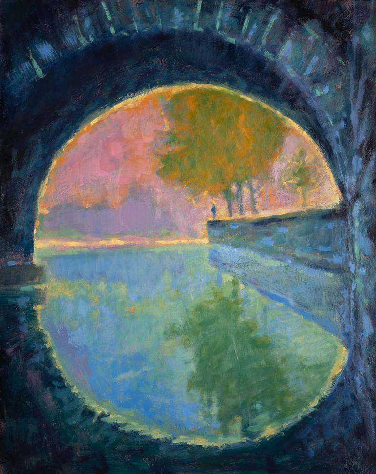 Ron Cooper’s paintings plunge us into a world of reflections and mirror images of memory and fantasy using richly layered oils to achieve a deep painted surface of literal and metaphorical figurative landscapes. Ron’s process involves an image library of reference photos, drawings and internal visions, referring at once to influences both historical and contemporary. Ron was awarded the prestigious Nancy Jo Abeles scholarship at SUNY Purchase where he earned his BFA. He also studied at the School of Visual Arts and the Art Students League in NYC, The Art Institute of Fort Lauderdale, and was awarded 2 consecutive scholarships to attend the New York Summer School of The Arts at Fredonia, NY. Ron has been invited to attend several artists in residence programs and his work can be found in private collections both in the US and internationally. Ron actively pursues a parallel career as a Visual Artist, Designer and Stonemason. Born in Los Angeles in 1966, He spent much of his early career in New Mexico and currently works out of Mount Shasta, California. Please inquire about shipping larger stretched canvas rolled in a tube as an alternative shipping option, this may be preferable for international and domestic.