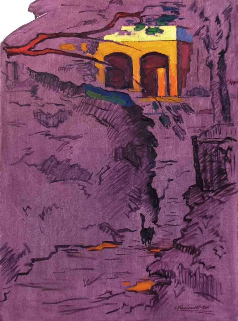 Ivan Kolisnyk, 1961, Ukraine. 'Evening Cat'. Medium: oil on canvas. Original size: 73x54cm. Created in 2011.