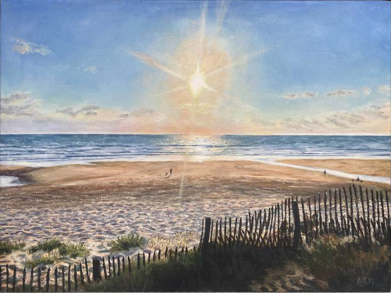 Such a stunning sunset! My aim was to capture the warmth of the evening and the sun highlighting the beach, as well as the relaxing feeling of strolling along there. I hoped my client would feel like they were looking through a window to the view they see, on their evening walk, on their annual summ...