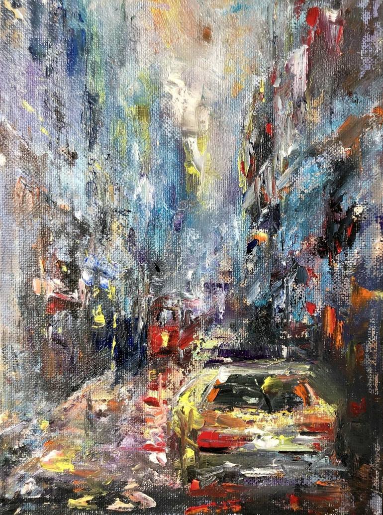 Oil on canvas board Lyrical and atmospheric cityscape art