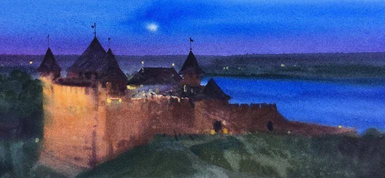 Watercolor painting “Evening fantasy. Khotyn fortress" was drawn from life in the Khotyn fortress during my bicycle plein air in western Ukraine in the summer of 2020. The work was painting from nature, but used the method of creativity according to fantasy and imagination. Although there was a for...