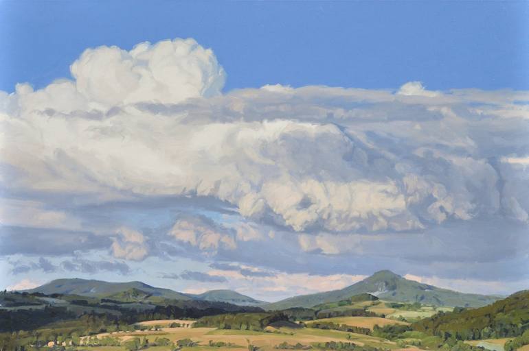 Landscape of Auvergne, in the very heart of France. View from my studio. This landscape is painted “alla prima”, with lively and spontaneous brushstrokes to attempt to capture the momentary effects of sunlight , the movement and the atmosphere. The white finish of the sides of the canvas allows y...