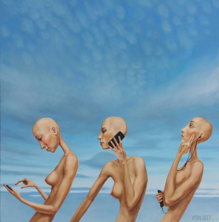 Myriam Feuilloley paints human. Inspired by a dream, she seeks the links between the invisible and the real. The figures in her paintings are always naked and bald. With no social references, they are stretched, metamorphosed and symbolic. They appear as sensual, embodied souls, evolving souls in search of the timeless. Feuilloley's oil paintings are based on 15th-century Flemish techniques, and her drawings are in charcoal, pastel and watercolor. She is an heir to the Surrealists. From the Musée des Terre-Neuvas in Fécamp to the Villa Carlotta Museum in Italy, from the Abbey of Montivilliers to the Museum of Fine Arts in Ho Chi Min City, Feuilloley pursues a career of french and international exhibitions.