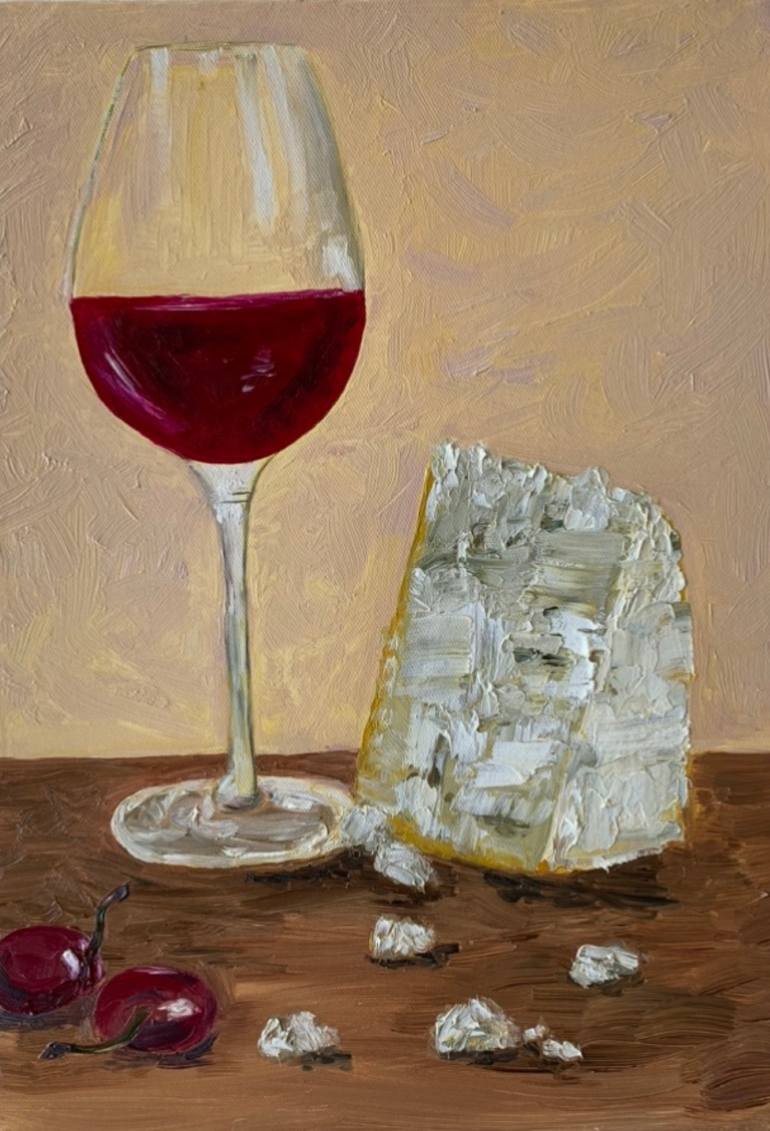 Evening with Red Wine and Cheese Oil Painting, Still Lİfe Print