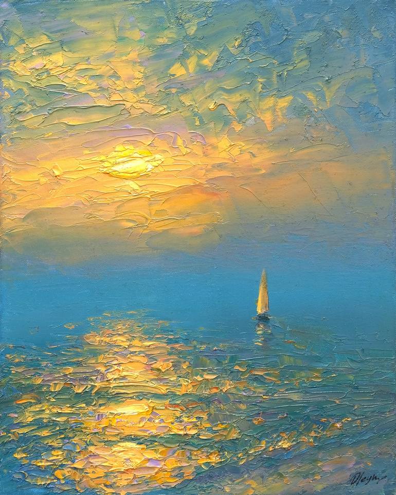 In a world overwhelmed by noise, speed, and constant pressure, I paint the sea not as a spectacle, but as a space of restoration. My work is a pause — a place where the human psyche can slow down, breathe, and regain balance. I believe that silence is not emptiness, but a form of resistance to the overload of the modern world. My paintings are created not to excite, but to restore. Dmitry Oleyn's painting is the embodiment of a high professional level, original technique and emotional fantasy. The artist uses only natural materials, museum linen canvas and oil paints of the highest quality to create the work. The purchase of this work will not only become a decoration for your home, but also a good investment. Actively gaining popularity, Dmitry Oleyn is recognized not only in his country, which is confirmed by many awards, but also in Europe, where personal exhibitions, fairs and auctions are held.