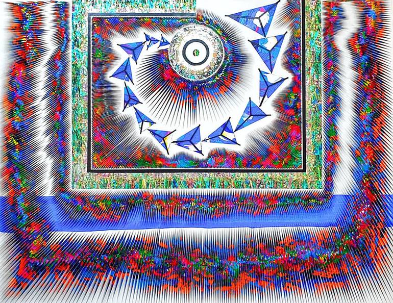 Yim Choon Lee’s painting “Black Hole” elicits visions of movement, eruptive, confusing, and dizzying. These feelings of movement gravitate the viewer into a wondrous cosmos of twisting layers and colors, drawing feelings of awe and questions of how its creation is possible. Yim has invented a new technique incorporating sculpture and painting called “Tearing Art”. This technique offers a three-dimensional experience, creating a desire to reach out and touch the various textures within. Born in Goseong, Korea in 1965, Yim inherited three-generations of Korean traditional bamboo and paper art. At age 5, he began to learn these skills from his father. Together, they traveled throughout the mountains in Korea to collect the bamboo for his father’s bamboo art. The bamboo art has a major impact on Yim’s paintings. When Yim was 9 years old, he went to a bamboo mountainside with his father. Waiting through a sudden rainstorm, Yim watched the swaying of the bamboo leaves in the wind. With the background of the mountains, Yim saw a wave of colors that rocked through the entire mountainside. This illusion was the most beautiful scenery he had ever seen. He wanted to transform this phenomenon to a canvas. Ever since, Yim has experimented with various materials and techniques to create his three-dimensional paintings on canvas. In the development of his art work, Yim started with Korean traditional paper and bamboo art, then experimented in paintings with soil and sand, and further used Korean traditional paper with light. Later he applied western oil to Korean traditional paper which created a unique style and texture. From there, he expanded his art horizon to include sculpture, installation art, and performance art. Yim has invented tearing art. Since 2010, Yim has experimented with a totally new technique: tearing the canvas. After removing the canvas, Yim places Korean traditional paper on top of the frame and paints in layers. He then paints both side of the canvas and replaces it upon the frame. Next, he cuts or tears the surface of the canvas and twists or folds it to reveal the back side’s paint. With this method, the colors of the three surfaces blend dynamically and create a unique visual effect. The three surfaces of painting represent the past (traditional paper surface), present (back of canvas linen), and future (front of canvas linen).