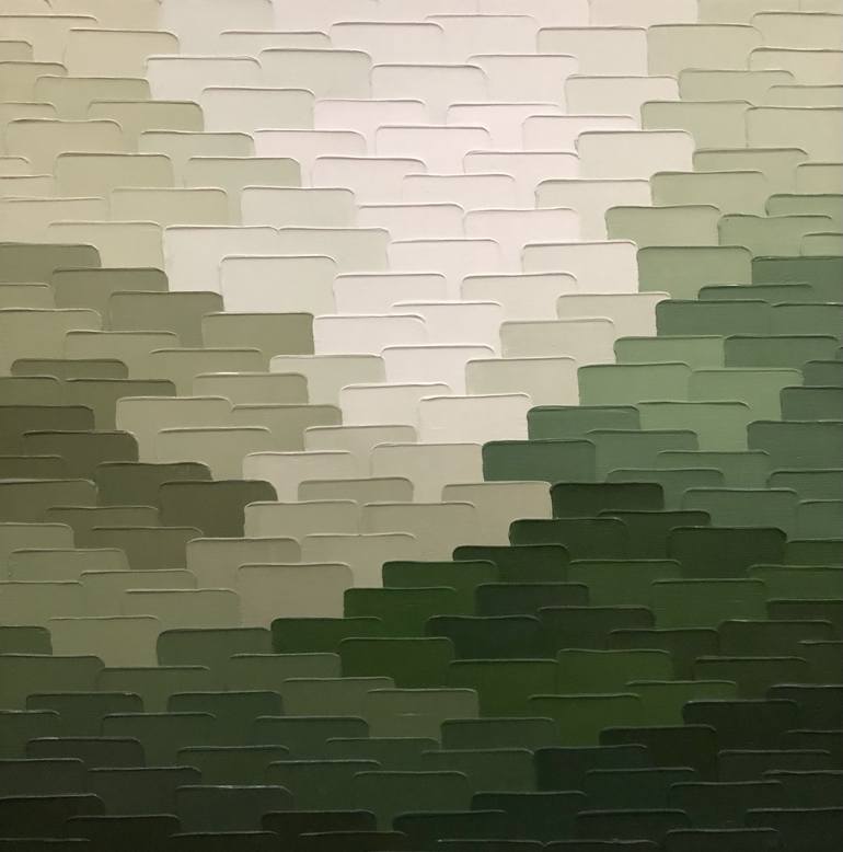 "Evergreen Dream" is an original high texture abstract landscape oil painting measuring 12 x 12 x 1.5 inches on cotton canvas, painted using oil paint, cold wax and a palette knife. The painting is sealed with a final coat of gloss varnish for protection. Ready to hang. Signed on the side. Titled, ...