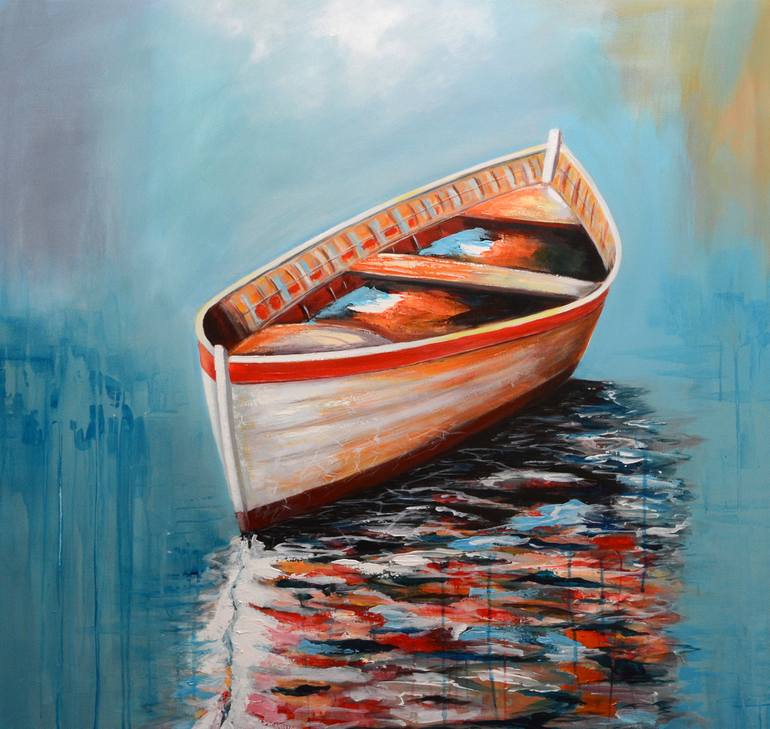 "Everything is better now" is an acrylic boat painting. The boat wondering free in the clear waters create a feeling of optimistic serenity. the clear sky and the vivid reflections give the sense of outmost calmness. The size of artwork is: 90 X 90 X 3 cm This Contemporary boat painting is made on...