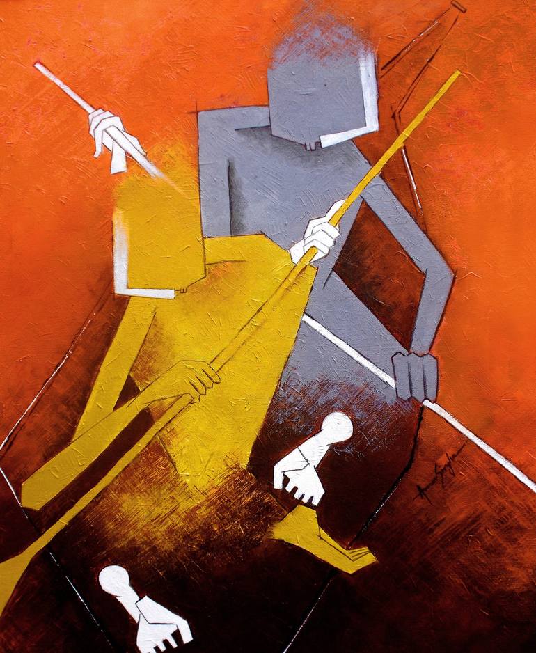 Born and raised in a baronial family in North Bengal, Amar Singha was fortunate to be thrust into a world of creativity at an early age, where colored pencils, crayons, and drawing sheets offered great solace from the kind of loneliness that accompanies stately culture. The flash of royalty that made up the world around him fostered his curiosity for deeper exploration, which he began to discover as soon as his pencils and crayons hit the paper. What was considered child’s play at that age catapulted him on a lifelong journey in search of greater truths, freedoms, and simple joys. Along the way, Singha picked up credentials from the Academy of Creative Art in Kolkata. In his final year of art school, he lost his father, which further flung him into the depths of an interior search—one that can best be described (insufficiently so) as a deep dive into the spiritual realm, an exploration into impermanence activated by those questions of life and death that plague us all. For about 16 years, Singha essentially disappeared from public life in order to listen closely for whispers of truth and emerged again using paints and brushes to translate the untranslatable through his art which he births in his home studio in Raghunathganj, a small village in West Bengal. STATEMENT - A conversation between ancestral Indian lineages and synthetic cubism allows me to prominent my emotions expressively. The use of colors demonstrates my sentiment that works to find hidden lofty things we usually ignore. The color itself becomes a subject that whispers for my sensation. Simplifying the composition produces uncluttered spaces that sometimes create a feeling of boundless joy followed by the expression of colors or sometimes inexplicable sensitivity of the subconscious mind. It also brings a calmness that immerses me deeply in the spiritual realm, followed by the past spiritual experience that makes sense of my creative spirit. A subtle emotional approach transforms my form into an abstraction that steadily expresses by line drawing. Drawing is a pivotal factor in my painting that help viewers discern the insides despite the abstract approach of my artwork. Amorphous brush strokes with acrylic paint create a little texture, but finally, it produces a calming smoothness that I enjoy. I then start drawing lines to make the details. Seeing how the object reveal under several abstract shapes in the painting cheers me.