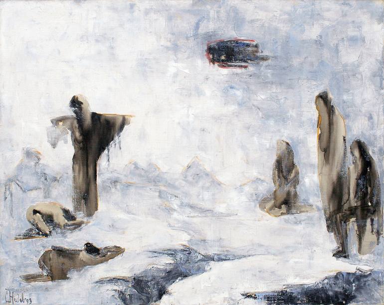 A painting about expectation in its broadest sense - religious (eschatological), social, individual etc... how it makes the world monochrome and the personality extremely susceptible to moods, ups and downs.