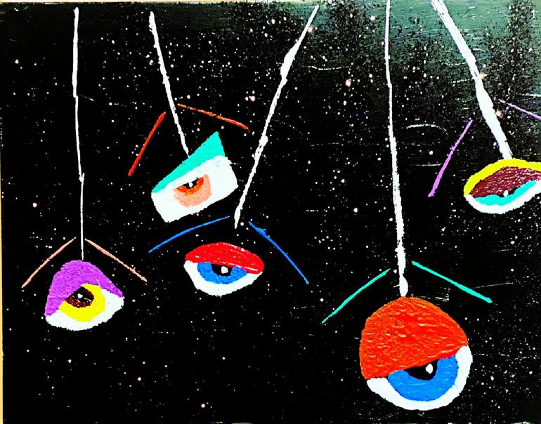 Just a bunch of eye drops lookin' at you! Each eye is made up of different vivid colors. Black Glitter background makes them stand out even more! Layered in epoxy!