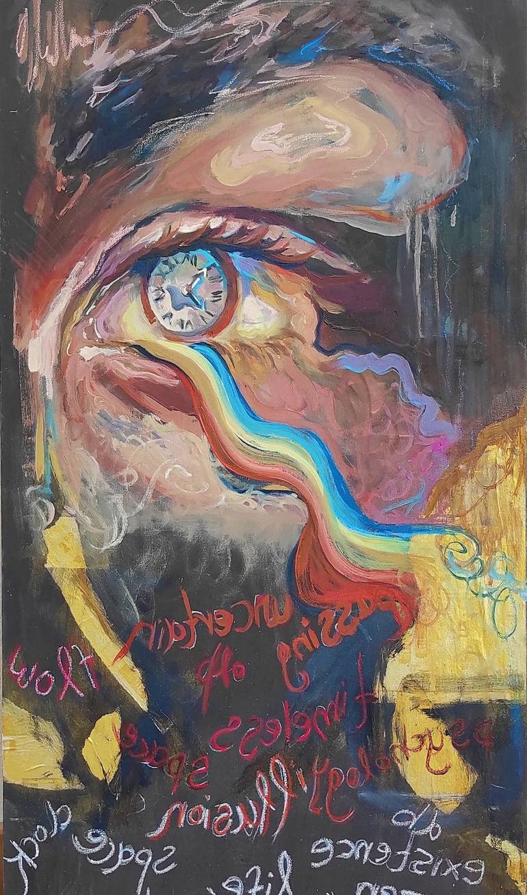 “When you're having fun, time flies,” as the phrase goes. Many people's views of the passage of time are influenced by their current activity. Boring activities appear to slow time down, whilst enjoyable ones appear to speed up time. This painting represents how time is watching how you use it, re...