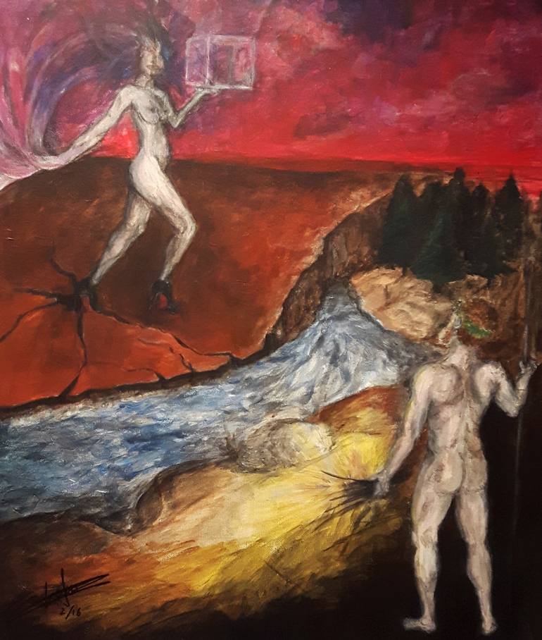 Represents the mithological story about Prometheus. After stealing the fire from the gods and giving it to humanity, Zeus orders Hephaestus to create the first woman, Pandora.