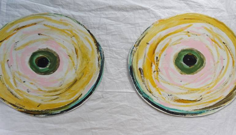 This diptych is a prototype of a primitive tribe with strong disire to be free. Size: 30,5x30,5x0.2 cm x 2 items. Eyesboobs A is a part of a small series of works by title Eyesboobs. It contains Eyesboobs A and Eyesboobs B artworks. Every single piece 30.5x30.5 cm can be placed horizontally or ver...
