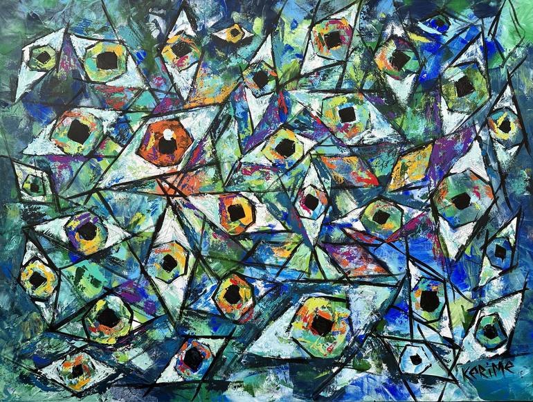 Original Acrylic Painting "Eyes on Me" by Kerime Elibuyuk, March 2023, Istanbul. Acrylic on canvas. Artwork Size: 120 x 90 cm (47,2 x 35,4 inches). The canvas size is about 130 x 100 cm (extra space for stretching) Made of artist-quality acrylic paints. It is signed by the artist on both the front ...