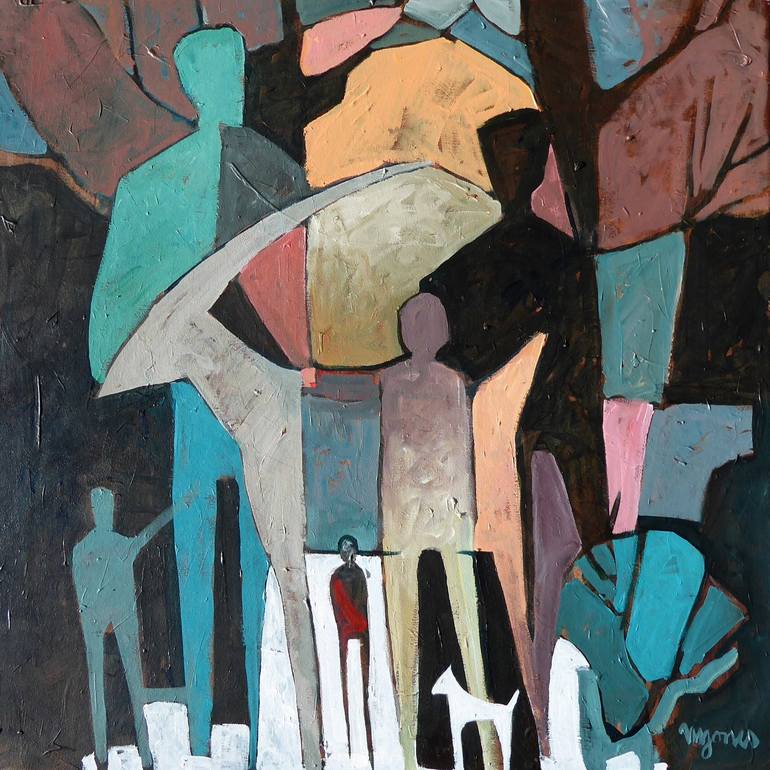 "FAMILY GROUP" is an original 24 x 24" acrylic painting by Micheal W. Jones. This lovely contemporary painting was created from original sketches, using the finest pigments on archival stretched canvas, and will be shipped, unframed, directly to your door from the artist's studio.