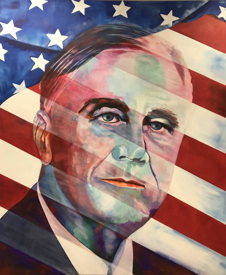 I chose to paint FDR as part of the US flag because he was the only president that served 4 consecutive terms and had to lead the country through the great depression and 2nd world war. It is easy to point fingers and blame a leader for wrongdoings, but no one can truly understand what it takes to l...