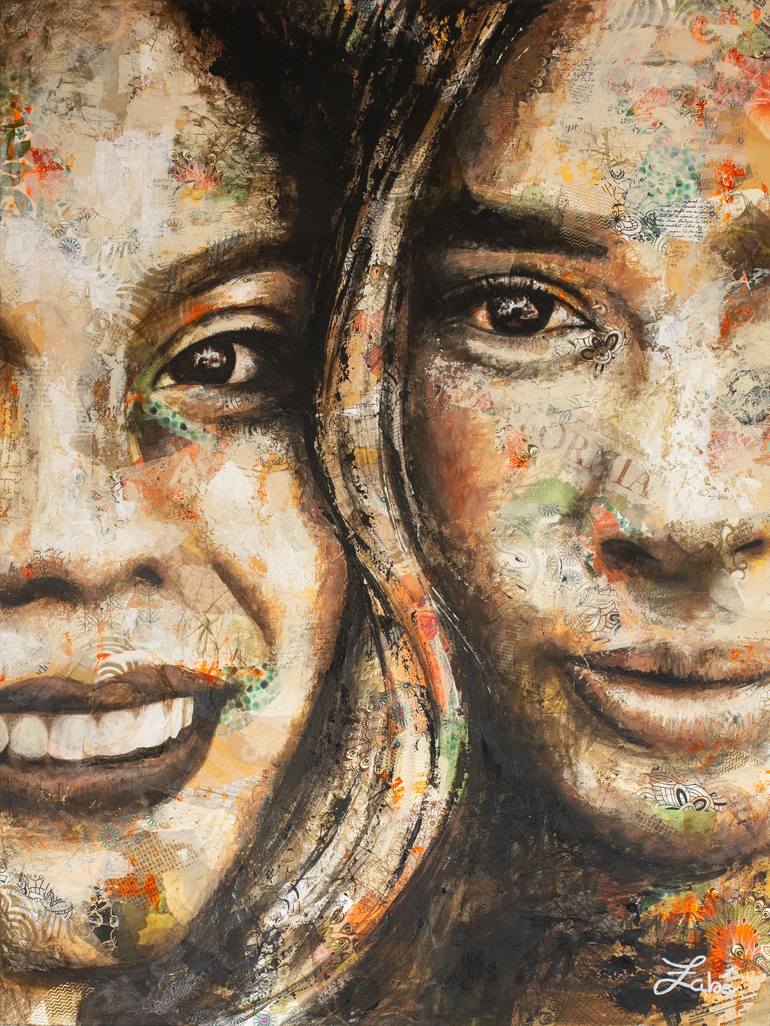 Zabé, is a French contemporary mixed-media artist who is based in Los Angeles. Growing up in Normandy, France, Zabé's home was a creative haven full of arts and craft supplies. Experimenting with different mediums became a method for Zabé to communicate her ideas and quickly turned into a lifelong passion. After 30 years of learning and exploring different materials, you can now find Zabé creating art at her beautiful home studio in Marina Del Rey. Zabé's distinctive mixed media approach combines collage and acrylic painting, resulting in striking and evocative artwork. She expertly incorporates abstract paper collage into the background of her paintings, which creates a foundation for the subject painted above. By layering colors, textures, shapes, and transparencies, Zabé shows the emotion and sensation behind the subject matter, revealing a double meaning in her work. The abstract collage is not just a decorative element, but a visual language that invites the viewer to explore the piece on a deeper level, beyond initial appearances and first impressions. Her expressive and colorful paintings have earned her a loyal following of and collectors and continues to captivate audiences.