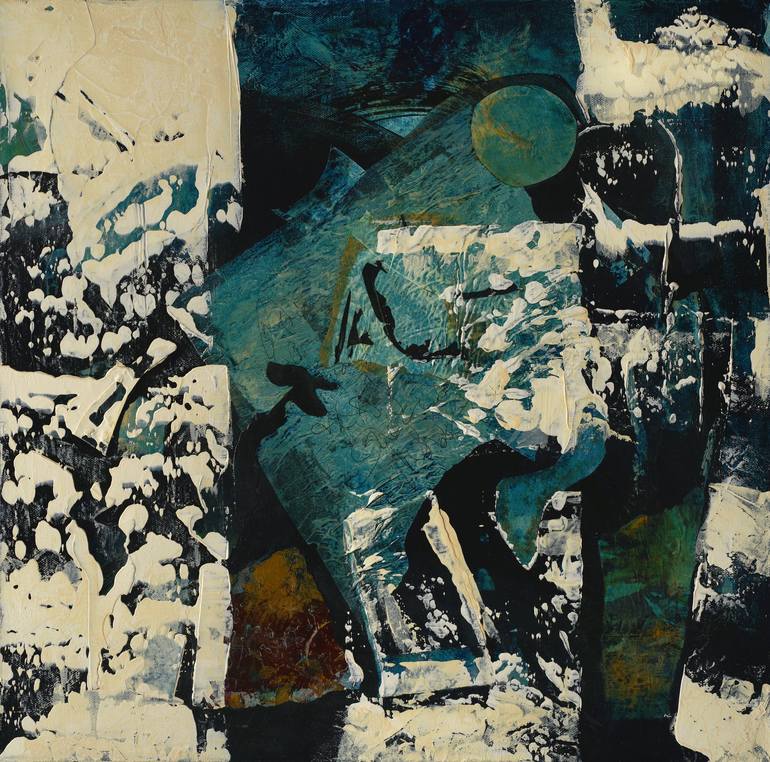 'Full Moon Rising' is a 20" x 20" acrylic abstract painted on a 1.5" deep gallery wrapped canvas. I often work intuitively and begin with random strokes and gestural mark-making. In this painting my initial marks and layers are mostly hidden beneath a layer of opaque black acrylic. A variety of col...