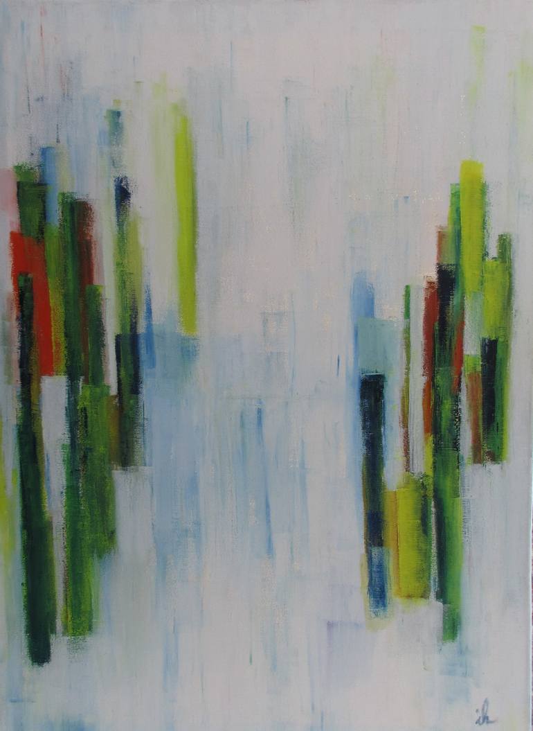 Inspired by the facade opposite my window with the plants climbing up the wall I painted my impressions on stretched canvas.