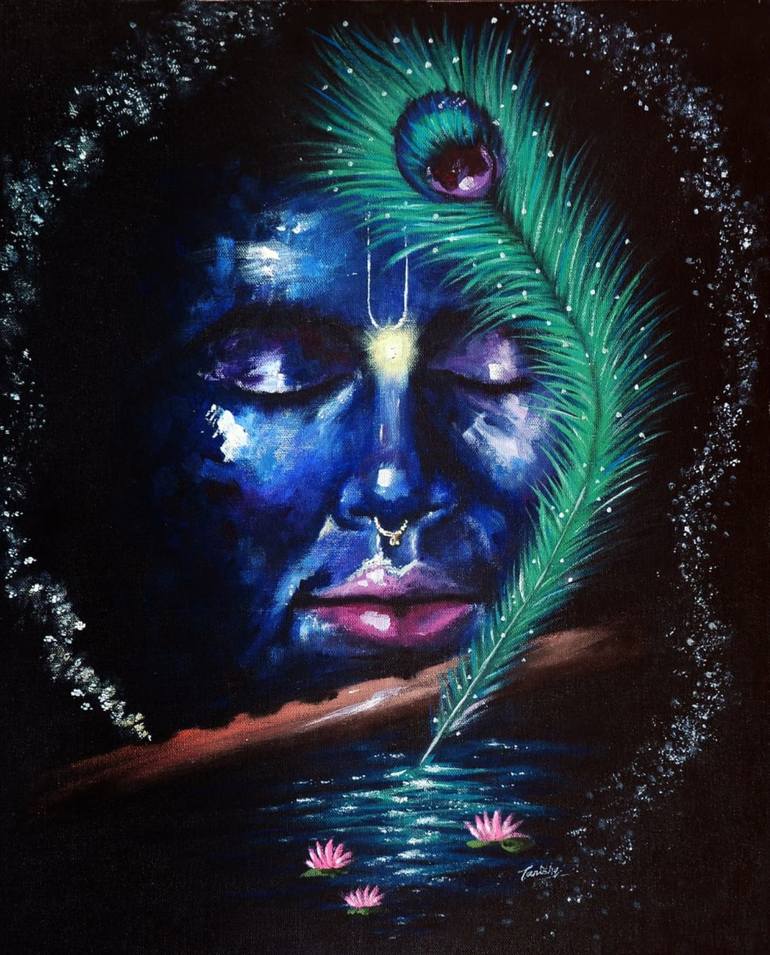 When I close my eyes and think about 'Krishna', something like this image/scenario came in my head. I've painted out that scenario in my artistic style on canvas. I did this painting when my soul was connecting to Krishna and my obsession towards Krishna took place. I love doing Portraiture art and ...