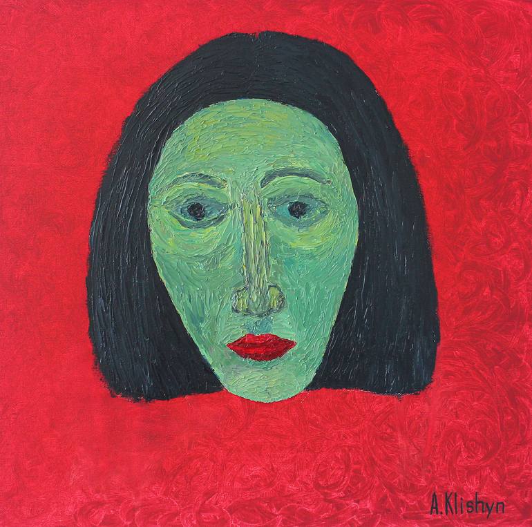 On a red canvas, there are colours of Georgian red dry wine, suddenly a completely spontaneous and unexpected face appeared a sad female face. So I called the picture "Face of sadness." Apparently the red colour of the background caused alarm and this image surfaced in the subconscious. The face is ...