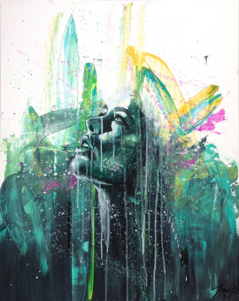 I’m a swedish artist inspired by colors and people, and I paint to express emotions and thoughts. I like my paintings to be a colorful, urban merge of realistic figures and abstract elements.