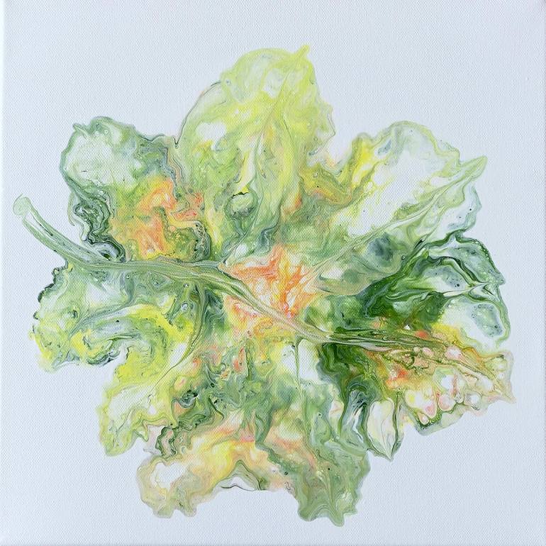 Everyone sometimes needs autumn... This small bright painting was created using the acrylic fluid technique. Without the use of brushes. Nature itself has worked here with the help of the elements of wind and fire. A beautiful autumn leaf on a white background will remind you of the transience of li...