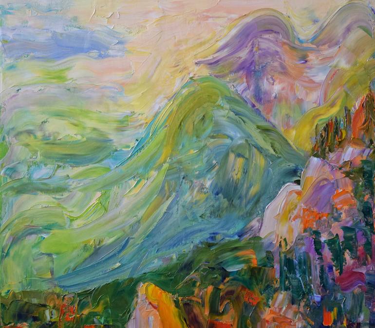 Mountain landscape original oil painting on canvas with Polish-Slovak mountains Pieniny. This painting is an original, authentic, one-of-a-kind, 100% hand painted. Created using oil colors on canvas. Free palette knife work, impressionistic style. Colors are bright and positive. It rises up your mo...