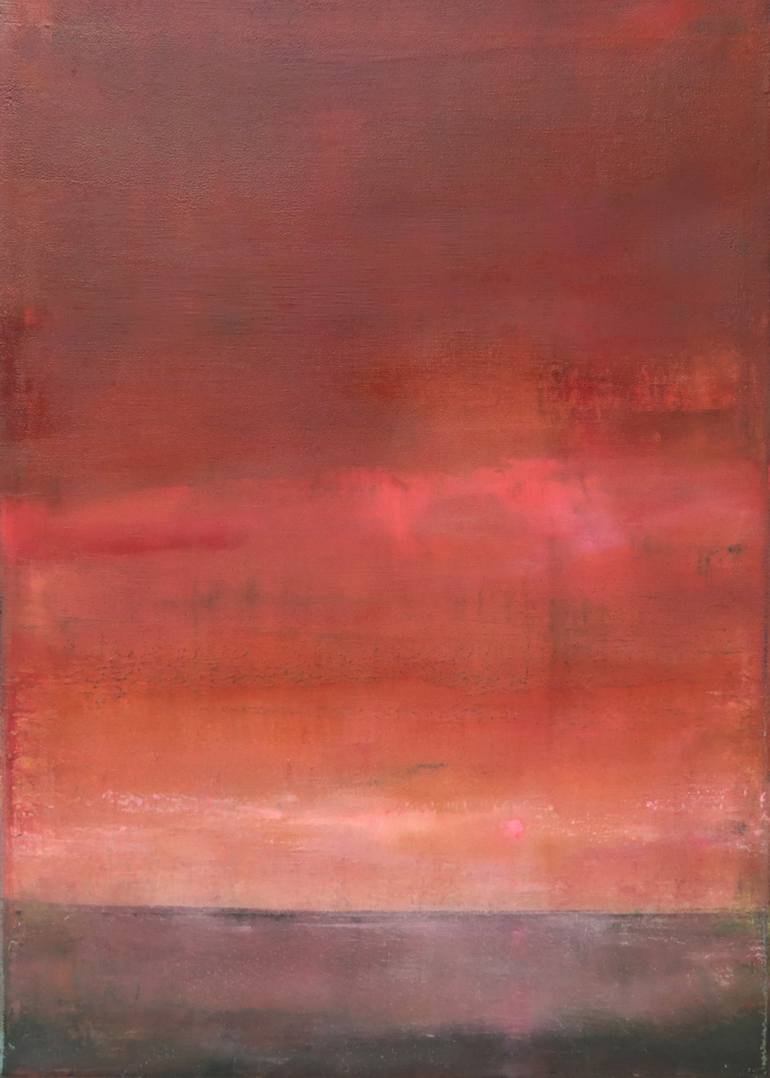 In this painting I have combined elements of abstraction and colour field painting to create an imagined autumnal sunset. The many layers of transparent and semi-transparent paint refract light to imbue the piece with the warm glow of a beautiful autumn day coming to a close with a glorious setting ...