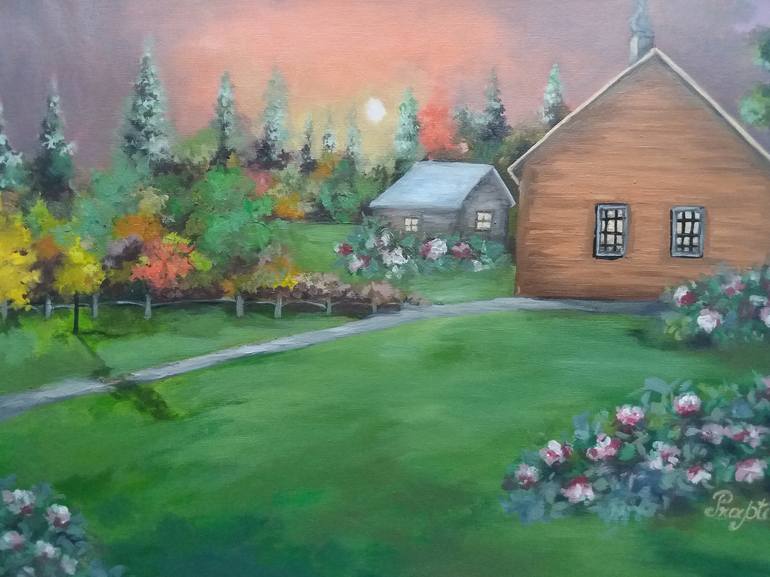 impressionism- moon light- autum fall colors- painted on a canvas paper- oil on canvas