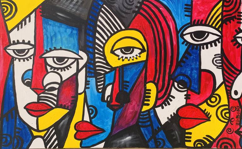 Cubist expression of portrait facials in abstract form. I used markers and acrylic paint on canvas. Painting includes Certificate of authenticity