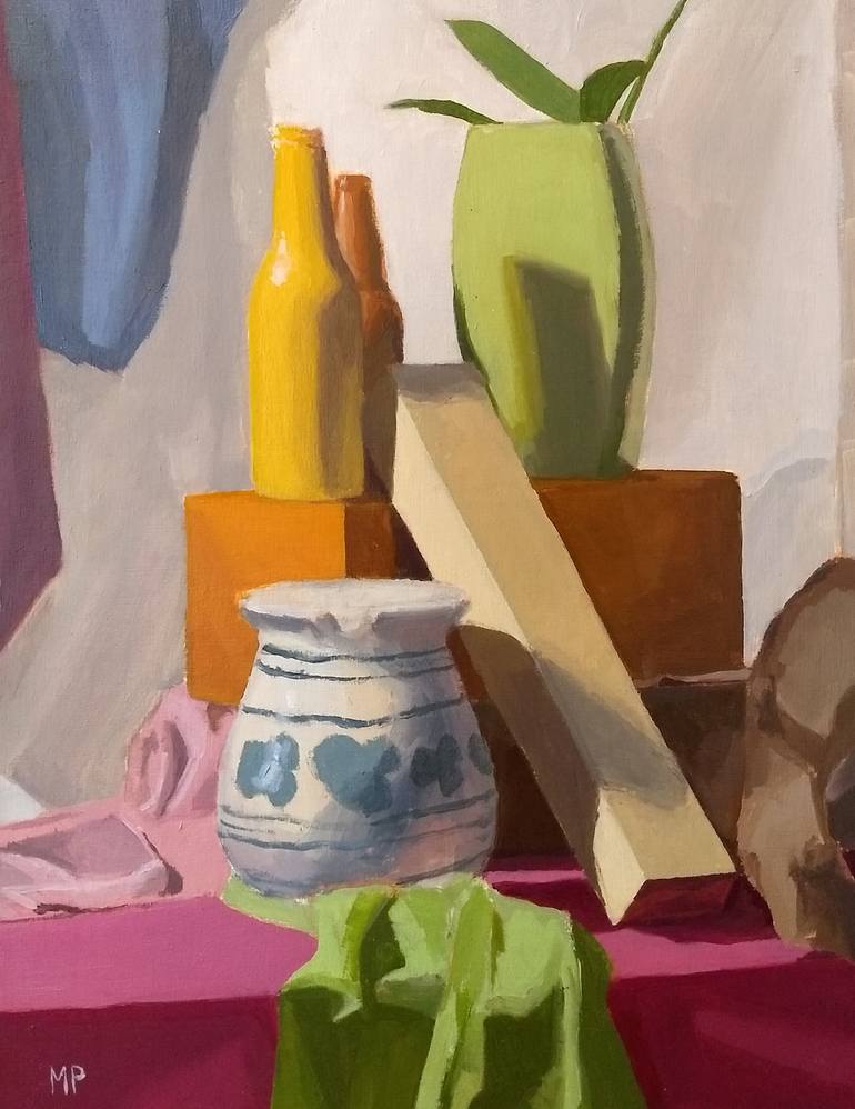 This oil painting was made in Winter of 2019, and it was my first exploration into painting on surfaces other than canvas. I enjoyed the process very much, as well as the subject, which was arranged by myself and fellow students in the studio at the University of Washington school of art.