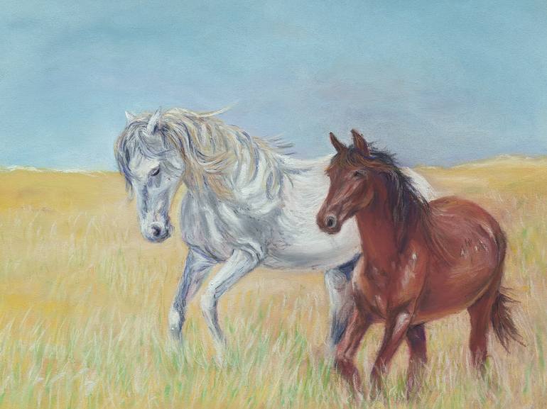 This Pastel is based on a Clydene Spencer Forbush photo of the Onaqui Wild Horses of Utah. It depicts how Family is important to all sentient beings. The colors are serene and warm You can almost feel the sun shine on the open fields. A perfect choice for any horse lover or anyone who is in awe of...
