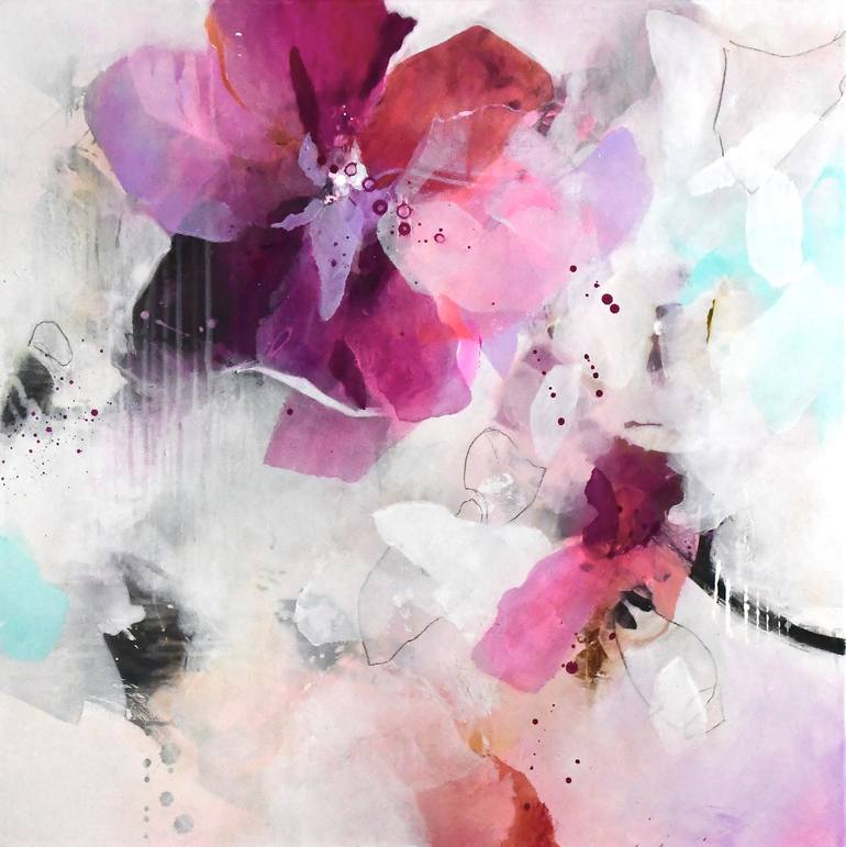 Original large abstract painting The colors are pink, rose, red, purple, spots of mint-green and white SIZE: 80 cm x 80 cm (31,5 inch x 31,5 inch), the canvas is 2 cm (0.7 inch) deep. It’s painted on a stretched canvas, the staples are on the back and the edges are painted with the coordinating co...