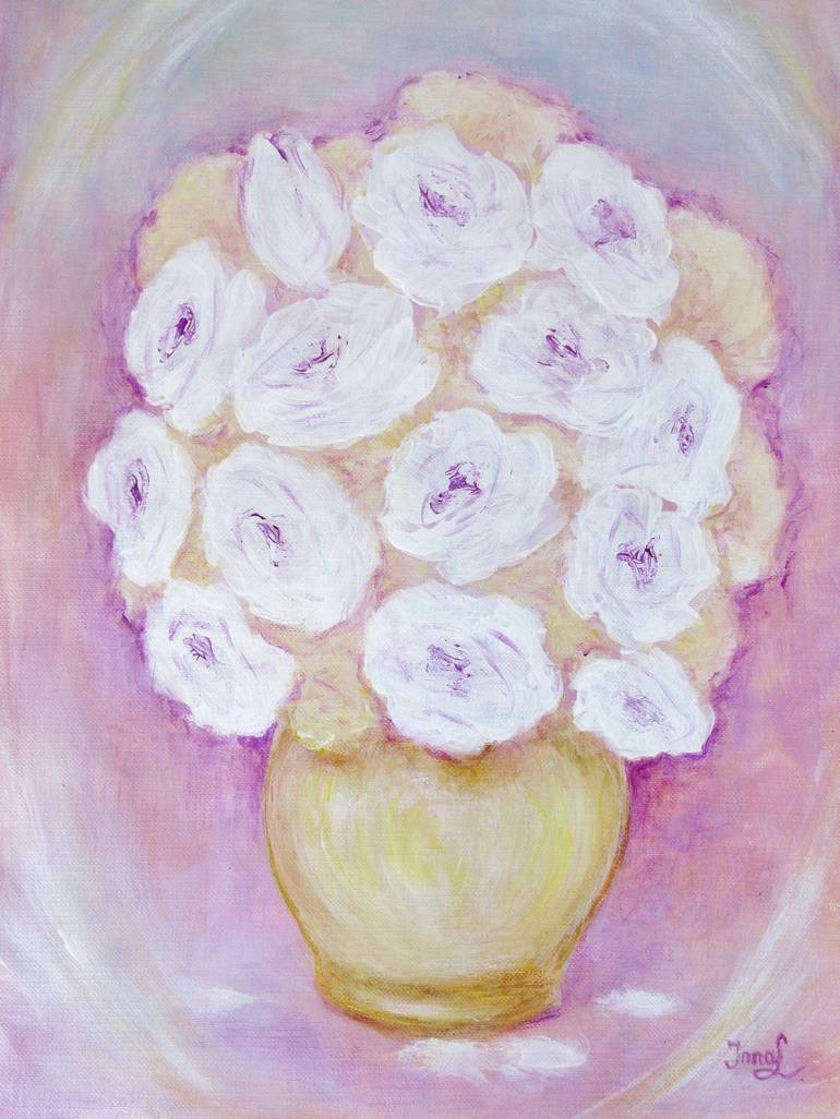*Original Flowers painting of Abstract Rose Flowers in a Golden Vase. Acrylic on high quality canvas paper. Size: 12" x 9" Thank you for looking.