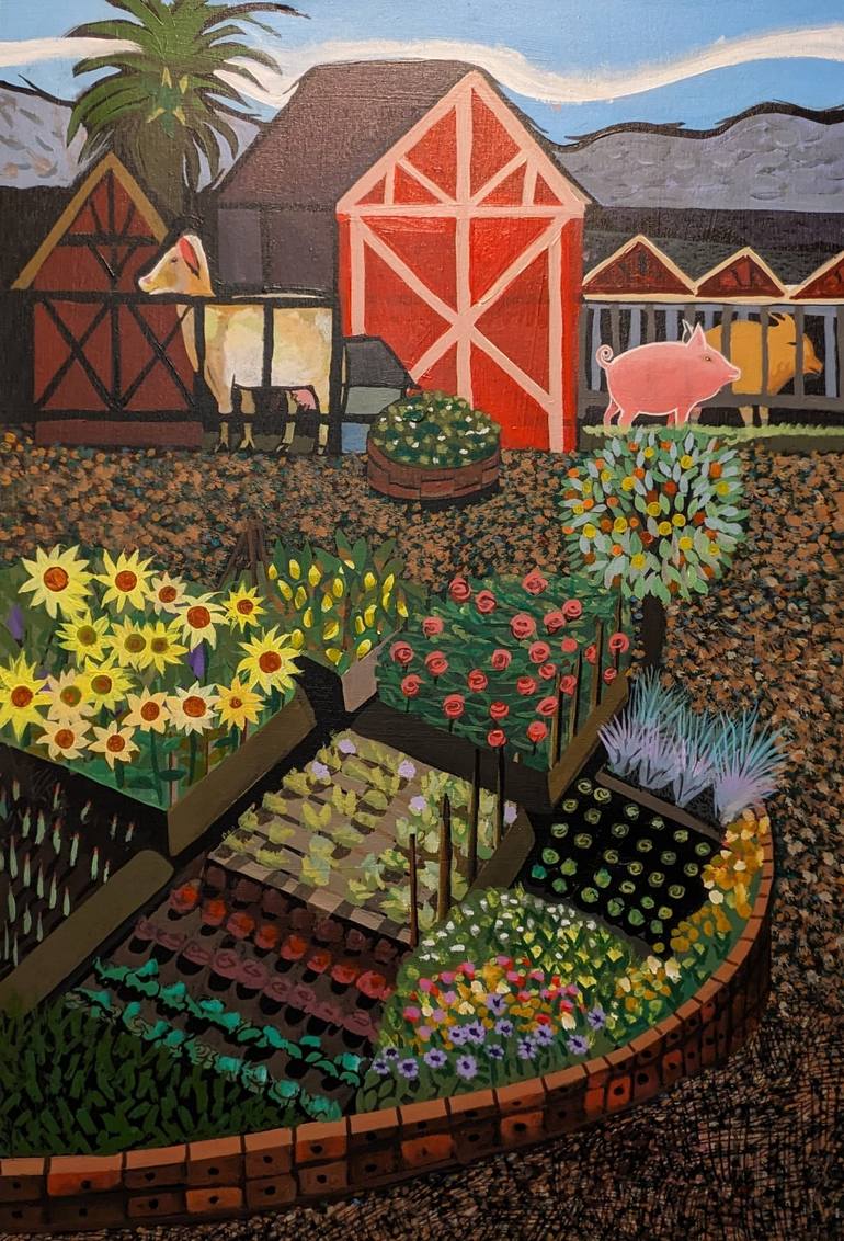Regionalism, tidy geometry, yolo county, vanessa Stafford Inspiration, essence, sense of place, nostalgia. Acrylics are versatile, I have a nostalgia for Regionalism, farms I'm drawn to the feelings that àre inherently visual in farms My style is folk àrt, mixed in with my own style. I want the co...