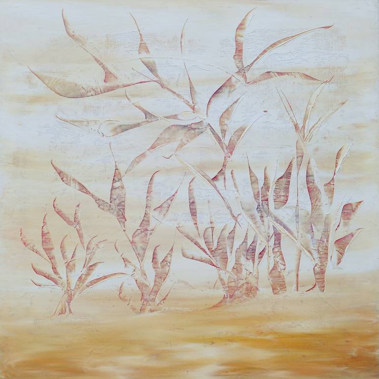 The artwork is reflection of meditation practice on satisfaction. We mostly think we will be satisfied when something happens, we achieve object or experience. The painting symbolizes the process of awareness of "make peace where you are" - that is being aware of the present moment, of our body-mind...