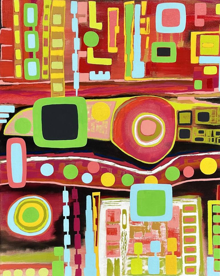 An original abstract painting by Rick VanHook. Finished with a high quality gloss varnish and is ready to hang. Sides are painted black.