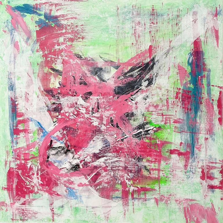 The inspiration behind this painting is feeling free not only with the brush strokes but in your mind as well. I painted this piece in a few layers of vigorous paint strokes starting with a thin layer of lime green. Using acrylic paint and glazing medium for the thin semitransparent layer effect of ...