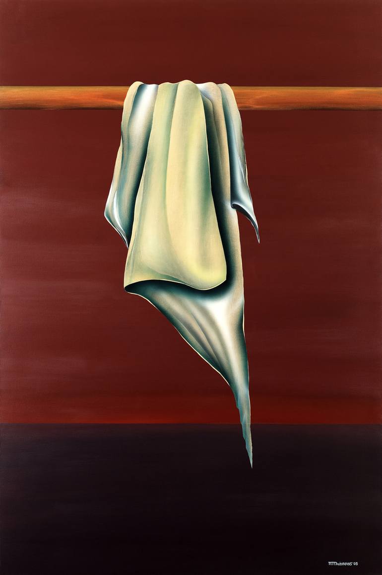 At this artwork I'm expressing by a surrealistic way connection with textile in space. This artwork is made on stretched canvas by airbrush paint with gesso acrylic and oil colors,. Original Artwork - since 2005 Dimensions H 150 x W 100cm - Price Euro 6900 unframed.